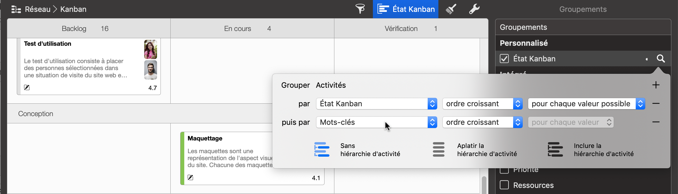 Pour configurer un swimlane pour votre tableau Kanban Merlin Project :